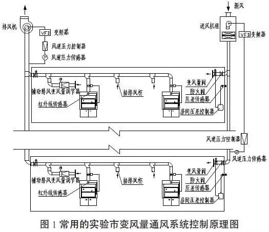 常用的實(shí)驗(yàn)室變風(fēng)量通風(fēng)系統(tǒng)控制原理。(見圖1)